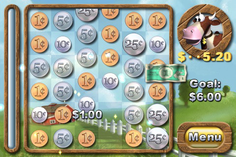 This is the lite version of Cash Cow for the iPhone/iPad. Kids/adults help Buck the Cow save the farm by counting and combining coins to reach a monetary goal. By successfully completing a level, money is earned to purchase items to improve the farm. This app falls more under the game category than educational but it does require kids to understand the value of pennies, nickels, dimes, quarters and dollars. The lite version only has three levels but if you are using it to teach kids to count and combine coins, you probably don’t need any more than that. Cute game!  –  I love the secret language of the cow and pig 🙂