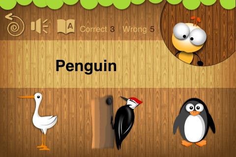 This FREE app for the iPhone/iPad is geared towards toddlers and has two modes – game and learning. In the learning mode, kids are shown a picture then the word is pronounced. In the game mode, kids tap on the word to have it pronounced then choose the correct picture. Only about 20 animals from two categories (aquatic animals & birds) are available without an in-app purchase. It is supported in two languages – English and Vietnamese. A major problem with the app is that the English pronunciations are not clear – shark sounds like shrock, penguin sounds like pengin – not recommended for this reason.