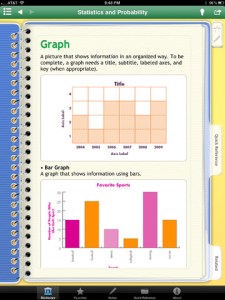 This iPad app normally sells for $2.99 but was available for FREE when I downloaded. It is an excellent resource for students in grades 3 – 9. There are more than 400 illustrated terms with definitions and examples. Subjects covered are measurement, algebra, geometry, fractions & decimals, statistics & probability, and problem solving. The Quick Reference Guide provides step-by-step instructions for solving problems with decimals, fractions, multiplication, division, and percents. This reference section also includes: formulas, measurement conversion tables, and charts & tables on factors, multiples, prime numbers, square roots. Kinds of math tools/equipment and learning with manipulatives are also explained – giving parents a better understanding of how concepts are taught in the schools.