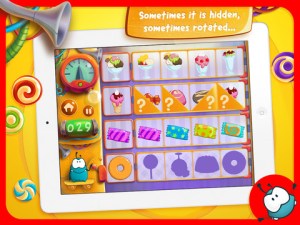 This app for FREE for a limited time for iPad. Tickle, the monster, is a very hungry guy! Toddlers (3+) feed him sweets by matching candies, cakes, pastries, etc. Sometimes the objects are rotated, sometimes only 1/2 of the object is shown, sometimes only the object’s shape is shown. This app requires kids to recognize shapes, colors, and sizes which helps them develop the essential skill of visual perception. The game has 4 modes and it increases in difficulty as kids progress. They are to work as quickly as possible with the goal of making 100 correct matches before the timer runs out. My only concern with this app is what Tickle is eating – all sweets. Other than that, it is a cute app – great graphics, catchy music, intuitive, and easy to play!