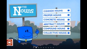 Nouns is a FREE download with the other parts of speech available as in-app purchases. I was impressed that this app covered so many kinds of nouns – common, proper, concrete, abstract, compound, and collective. This app would work well to introduce/teach nouns in a one iPad classroom.
