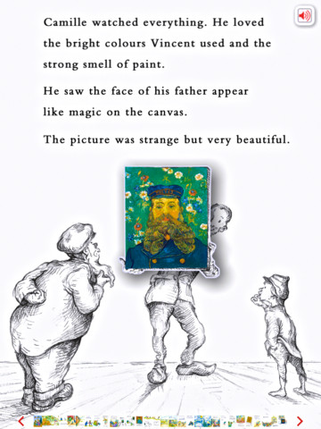 The app has some cool extras: a Museum of 10 Van Gogh paintings, an armature game, and painting. The Museum contains 10 Van Gogh paintings with facts about each one. The armature game shows kids the mechanics of animation. The animated structures are collapsible so that kids can put the pieces/gears back together. The painting option permits kids to paint the characters for the book. Then the kids’ paintings then become part of the story!