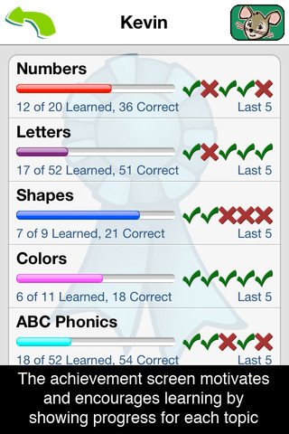 One of the BEST thing about this app is the appropriateness of the topics. It teaches numbers to 20, counting to 10, upper and lower case letters, 11 colors, 9 shapes, and letter sounds. I was so excited that it taught the hard and soft sound of c!! Download this one today – it is rarely FREE!