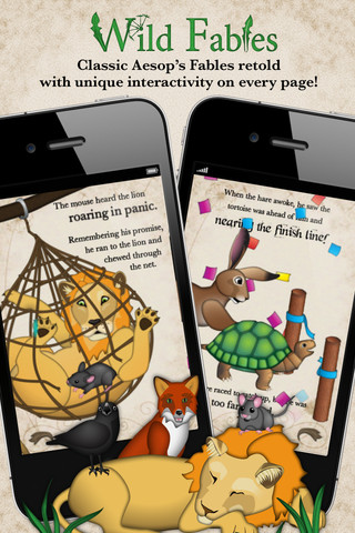 FREE for a limited time – Wild Fables, an interactive version of Aesop’s fables. This educational app comes with 3 FREE fables (The Crow and The Pitcher, The Fox and The Grapes, and The Ant and The Chrysalis) and the option of purchasing 5 additional stories. Kids don’t just read they stories in this app, they play along! They help save a lion, help a fox leap for a grape, etc. as 3 of Aesop’s fables come to life. Designed to be read independently, the stories do not have a read along/aloud option. The music, effects, and accelerometer can be turned of/off in the settings. If you use Aesop’s fables in your classroom, check out this app. It could be used to introduce fables.