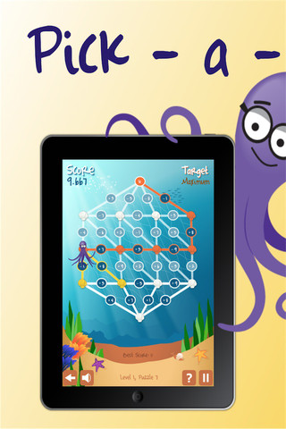 Pick-a-Path is a FREE math game from the National Council of Teachers of Mathematics. Kids help Okta the octopus reach a target number by choosing the best path from the top maze to the bottom of a maze in this educational app. There are 7 different levels with 7 puzzles in each level. The puzzles start with basic operations then move to fractions, negative numbers, decimals, and other more difficult skills. Kids have to plan out a strategy to reach the target which can be a specific value, a minimum value, or a maximum value. This app provides a lot of good skills practice. And… as an extra added bonus, kids have to think of a strategy!
