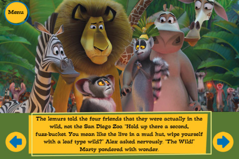 FREE today for iPhone/iPad, this app normally sells for $.99. The Madagascar Movie Storybook Collection features favorite stories & characters from the Madagascar movies. Included with the app is a 30 page story based on the first Madagascar movie. Madagascar Escape 2 Africa and Madagascar 3: Europe’s Most Wanted are available as in-app purchases. There are three ways to enjoy this book – read to me, auto play, or read to myself. This e-book uses vivid images from the movies and features genuine character narration – which kids will love. The story is not interactive – there is nothing to tap, find, move, etc. on the individual pages. Regardless, you will want to download this app if you have a child (2+) that is a fan of the Madagascar movies – it is nicely done storybook.