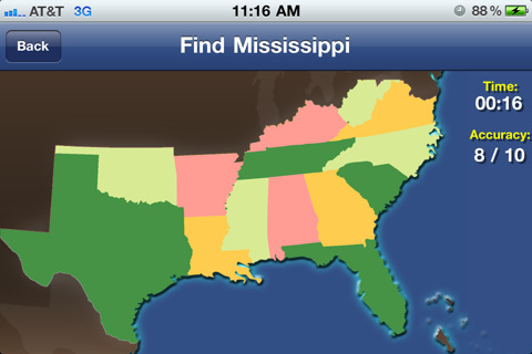This geography app is FREE for iPhone/iPad. It teaches kids to identify countries, states, or provinces of 22 major regions of the world using a fun game. Kids first choose the region that they would like to be quizzed on. The app names which area is to be found and the child taps the map in the proper spot. Hints can be enabled if you wish. Both accuracy and time are measured. Results are saved in the statistics section of the app which is fairly sophisticated. It gives the fastest time and keeps track of the overall accuracy. You can also see specifically which regions are known/unknown. Two additional games modes are available through an in-app purchase ($.99). Nicely done app!!