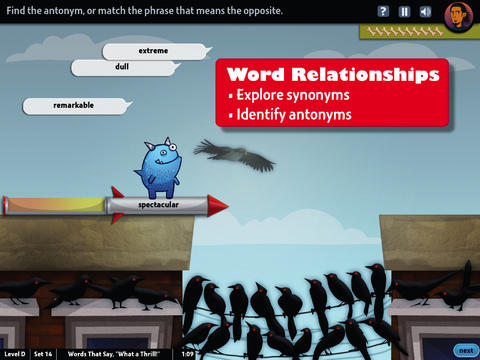 FREE educational app – World’s Worst Pet – Vocabulary. Snargg, a cute blue pet needs kids to use their vocabulary skills to get him out of trouble. The app’s four games teach context, word sorts, synonyms, & antonyms as they expose kids to over 1000 words across 5 levels: grades 4 – 8. Words are taught in sets – 10 conceptually related words per set. Kids are encouraged to replay each word set to improve their scores. Other features of the app include: clearly explained definitions with examples of how the word is used, multiple exposures to words, writing prompts, and… a really fun narrative with rewards. The app allows multiple players making it perfect for use in the classroom. Teachers can use it to differentiate instruction, as part of a center, for individual or group assignments, as homework, etc. There are so many great things about this app – meaningful content, a fun interface, and it meets CCSS. Fabulous!