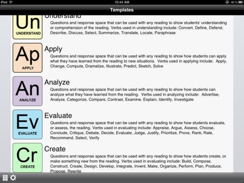 FREE for a limited time – ReadNRespond, an educational app for reading comprehension. Teachers can easily create reading response forms based on Bloom’s Taxonomy with this app. There are 20 questions for each of the 6 levels of understanding – recall, understand, apply, analyze, evaluate and create. The questions are general in nature so that they can be used with any book, movie, etc. There are so many ways to use this app: modeling how to answer questions, whole group instruction, literature group instruction, teacher-directed assignment, student-choice assignment, project-based learning, etc. Response forms can be printed out to assign in class, students can respond/save within the app, or students can email their responses to their teacher. It would even be fun to have students email their responses to each other for peer editing. What a fabulous app for reading students in grades 3 and above – perfect for literature groups!!