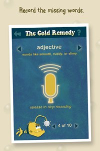 SparkleFish is a FREE educational app for iPhone/iPad that works like a digital version of Mad Libs. Five stories are included in the app with others available as in-app purchases. Kids are asked to provide words from a specific category (animal, body part, etc.) or a specific part of speech (adjectives, nouns, adverbs, past tense verbs, etc.). If the child cannot think of a good word, he/she can get suggestions from SparkleFish by touching the word. Instead of writing the words, kids record their choices in their own voice. Their words are played back in the reading of the story. Kids can save their recordings and listen to them later. This app allows kids to practice parts of speech in a fun way. Kids love Mad Libs because the results can be hilarious. I am sure they will feel the same way about SparkleFish. 🙂