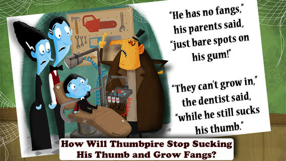 FREE today – Thumbpire – The Funny Story Of A Little Monster’s Big Problem, a cute e-book for young kids. The little vampire’s fangs will not come in because he sucks his thumb. Kids read along to find out how his problem is solved. The story would be great for a quick lesson on the elements of a story – setting, characters, problem, events, & solution. It is written by children’s author Stephen White of “Barney & Friends™ and Sarah G. White. Other features of the app include: “vampire” narration or read it myself, sound effects/music, and activity pages. Cute and just in time for Halloween!