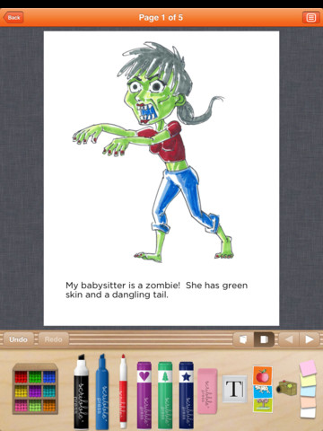 After creating the story, kids can customize the cover and add information about the author. Books can be shared in a variety of ways – via email, via Facebook, to the Scribble Press public gallery, or to iBooks to be read and reread later.