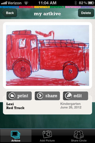 Artkive makes it easy to digitally store, share, and print your children’s artwork/schoolwork. Originally released on August 11, 2012 – this app for the iPhone/iPad is FREE again. It is very easy to use…. First you create an account. Then enter the first names of your children. Take photos of their artwork/schoolwork or upload existing photos from your camera roll. Tag the photo with a child’s name, age or grade, the date, and a title. So simple! You can then share their art with family & friends. You will also be able to have Artkive create digital books & other products using your child’s artwork/schoolwork. You can even order a few holiday presents while you’re at it. 🙂 Artkive makes it easy to collect, store, and share your children’s artwork.