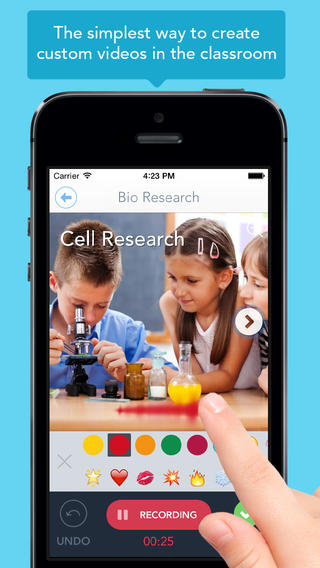 Educreations is great FREE app that turns your iPad into a recordable whiteboard. You can create tutorial videos for a variety of purposes: teach a lesson, create example math problems, explain a diagram, add commentary to your photos, etc. This educational app records & replays your voice, handwriting and/or drawings. Educreations is simple to use and permits you to build lessons with multiple pages. The editing tools allow you to: add text to any page, add photos, resize and move images, easily erase drawing mistakes, create “animated playback” by dragging objects as you record, and more.